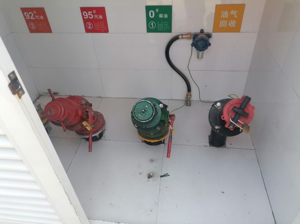 加油站設置汽油卸油和加油油氣回收系統(tǒng)。加油區(qū)設置加油罩棚,罩棚為鋼結構罩棚。罩棚下設置3臺雙油品四槍潛油泵型加油機(汽油加油槍帶油氣回收)和1臺單油品雙槍的潛油泵型加油機;埋地油罐區(qū)設有3只20m³的埋地FF油罐(玻璃纖維增強塑料雙層油罐),其中20m³汽油罐2只(分別為92#汽油罐、95#汽油罐),1只20m³柴油罐,油罐總容積折算為50m³(柴油罐折半計入),根據(jù)《汽車加油加氣加氫站技術標準》GB50156-2021的相關規(guī)定,該加油站為三級加油站。