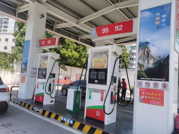 加油區(qū)設(shè)置加油罩棚,罩棚下設(shè)置4臺雙油品雙槍潛油泵式加油機(汽油);埋地罐區(qū)設(shè)有2只單層油罐(設(shè)置防滲罐池、車道罐),其中30m3汽油罐1只(92#)、20m3汽油罐1只(95#),油罐總?cè)莘e50m3,根據(jù)《汽車加油加氣加氫站技術(shù)標準》GB50156-2021的相關(guān)規(guī)定,該站屬于三級加油站。加油站已安裝汽油卸油和加油油氣回收系統(tǒng)。